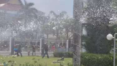 Petugas Terlibat Kericuhan dengan Pengunjuk Rasa Warga Ppulau Rempang, Senin (11/9/2023)/ tim tvOnenews/Alboin