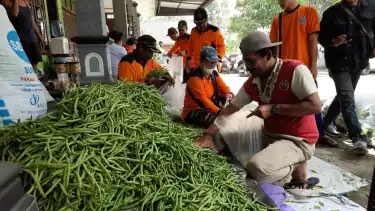 Bantuan hasil bumi yang berupa kobis, wortel,sawi, buncis, dan sayuran lainnya dikumpulkan di salahsatu rumah warga di Dukuh Semampir, Desa Candi, Kecamatan Ampel, Boyolali untuk dikemas terlebih dahulu.