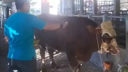 Boyolali, tvOnenews.com - Warga lereng Gunung Merapi di Musuk, Boyolali, Jawa Tengah, memiliki prosesi khusus dalam penyembelihan hewan kurban saat Hari Raya Idul Adha. Sapi-sapi kurban sebelum disembelih dimandikan dan ditaburi bunga 7 rupa oleh peserta kurban Masjid Ash Shirathalmustaqim Dukuh Manggung.