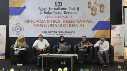 tvOnenews.com - Ikatan Jurnalis Televisi Indonesia (IJTI)  menggelar Ngaji Jurnalistik yang mengambil tema "Menjaga Etika, Kebenaran dan Nurani di Era AI" di Hall Dewan Pers, Jakarta, Jumat (27/2/2026). Kegiatan ini menjadi ruang refleksi bagi jurnalis televisi dalam menghadapi tantangan perkembangan kecerdasan buatan (Artificial Intelligence) yang kian masif di dunia  media.Â
