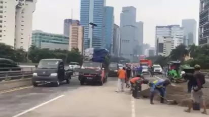 Ada Evakuasi Truk Pasir Terguling, Lalin Tol Semanggi Padat