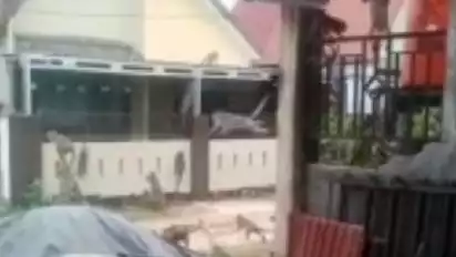 Dalam video tersebut terlihat monyet melompat dari satu rumah ke rumah lain. Mereka memanjat pagar dan berlarian di atap rumah penduduk.