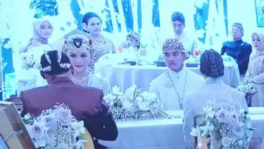 Yogyakarta - Putra Presiden Joko Widodo (Jokowi) Kaesang Pangarep resmi menjadi suami dari Erina Sofia Gudono setelah menjalani akad nikah di Pendopo Agung Royal Ambarrukmo, Kabupaten Sleman, Daerah Istimewa Yogyakarta, Sabtu (10/12/2022).