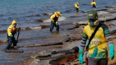 Sekitar 150 pekerja SPRC dan 200 personel AL telah dikerahkan untuk membersihkan pantai dan memasang penghalang minyak, kata pihak AL.