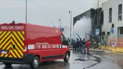 Pesawat jatuh menimpa gedung perkantoran dua lantai, dan memicu kebakaran hebat, di pinggiran kota Milan, Italia.