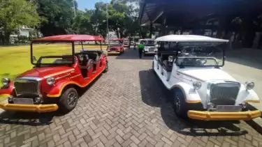 Solo, Jawa Tengah - Wali Kota Solo, Gibran Rakabuming Raka memamerkan mobil listrik klasik hibah dari pengusaha Dato Sri Tahir melalui Tahir Foundation. Mobil listrik sebanyak delapan armada itu akan difungsikan menjadi moda transportasi bagi wisatawan yang akan mengunjungi sejumlah obyek wisata di Kota Solo, demikian diberitakan viva.co.id, Minggu (17/10/2021).