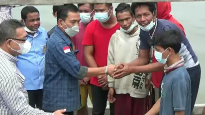 Belawan, Sumatera Utara - Setelah menjalani proses hukum selama 9 hari di Malaysia, 10 nelayan asal Pantai Labu, Kabupaten Deliserdang, Sumatera Utara, akhirnya dipulangkan. Mereka dijemput oleh Patroli Stasiun Pengawasan Sumber Daya Kelautan dan Perikanan (PSDKP) dan tiba di Dermaga Terminal Bandar Deli, Pelabuhan Belawan, Kota Medan, Kamis (21/10/2021).