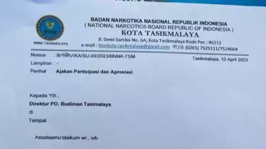 Tasikmalaya, tvOnenews.com - Beredar di media sosial twitter surat permohonan THR yang dikeluarkan Badan Narkotika Nasional (BNN) Kota Tasikmalaya. Dalam surat permohonan yang kini viral tersebut berisi permintaan Tunjungan Hari Raya (THR) kepada PO Bus Budiman bagi 28 pegawai BNN Tasikmalaya.