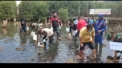 Sibolga, Sumatera Utara - Memperingati hari Sumpah Pemuda, Kapolres Sibolga, AKBP Taryono Raharjo, mengajak masyarakat khususnya anak muda menanam 3.000 batang mangrove di areal Zona Penyangga (Buffer Zone) Pertamina, Jalan Sibolga Baru, Kelurahan Pasar Belakang, Kecamatan Sibolga Kota, Sibolga, Sumatera Utara, Kamis (28/10/20121).