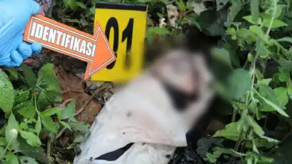 Mojokerto, Jawa Timur - Mayat bayi dalam tas ditemukan di Jurang Gembolo, Hutan Wisata Pacet, Desa Cembor, Kecamatan Pacet, Mojokerto, Minggu (31/10/2021). Bayi ditemukan oleh warga saat mencari rumput. Sosok mayat bayi yang belum diketahui jenis kelaminnya tersebut, ditemukan Julianto, 43 tahun, warga Desa Kemloko, Kecamatan Trawas, terbungkus kain warna hitam di dalam tas warna coklat.