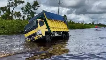 Terendam Banjir Jalur Trans Kalimantan Berlubang dan Rawan Terjadi Kecelakaan