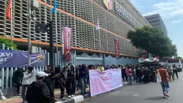 Massa Gerindra Gelar Aksi Unjuk Rasa Depan Bawaslu, Tuntut Netralitas "Tolak Calon Komisioner Titipan Partai"