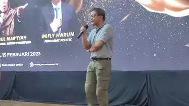 Dokumentasi Rocky Gerung di Rakernas Partai Ummat, di Asrama Haji Pondok Gede, Jakarta Timur, Rabu (15/2/2023). (Tim tvOnenews/Abdul Gani Siregar)