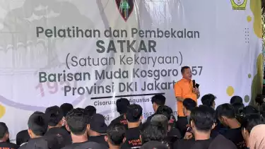 Jakarta, tvOnenews.com - Sejumlah 150 personel diberangkatkan untuk mengkuti Pelatihan dan Pembekalan Satuan Kekaryaan atau biasa disebut SATKAR dibawah Komando Barisan Muda Kosgoro 1957 Provinsi DKI Jakarta menuju lokasi pelatihan The Forest, Kopo, Jawa Barat.
