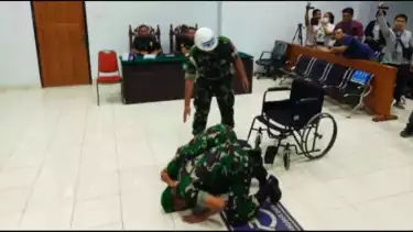 Diketahui keduanya datang dengan mengenakan seragam militer lengkap, serta Terdakwa 1, yaitu Yalpin Tarzun menghadiri sidang dengan duduk di kursi roda.