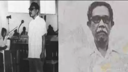 Foto: Sjam Kamaruzzaman saat menjalani sidang di pengadilan militer (Dok.Salim Said: Dari Gestapu ke Reformasi, Serangkaian Kesaksian)