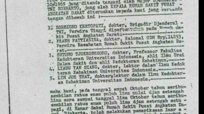 Setelah tujuh mayat jenderal korban G30S/PKI ditemukan di dalam sumur di Lubang Buaya, Jakarta Timur, pada 4 Oktober 1965, kemudian dibawa ke RSPAD untuk diotopsi.