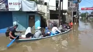 Banjir Hampir Dua Meter, Warga Gunakan Perahu untuk Keluar Rumah