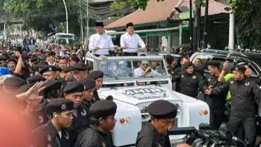 Iring-Iringan yang Mengantarkan Pasangan AMIN, Anies-Imin Ketika Mendaftarkan Diri sebagai Capres dan Cawapres ke Komisi Pemilihan Umum (KPU), Kamis (19/10/2023)/tim tvOnenews/Gani