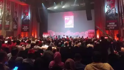 Terdengar seruan ratusan kader PSI menyanyikan dukungan kepada Prabowo Subianto.
