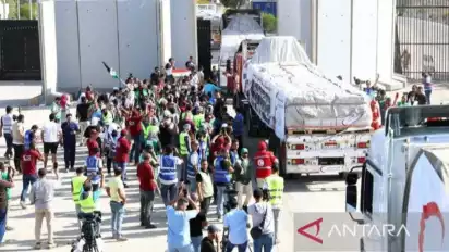 Hanya sedikit truk bantuan yang berhasil masuk Gaza sejak pintu lintas batas Rafah dibuka pada 21 Oktober.(ant/bwo)