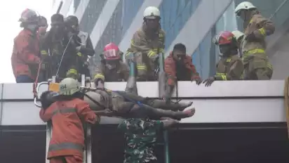 Saat ini, proses pemadaman di lokasi telah dinyatakan selesai. Beberapa petugas pemadam kebakaran membenahi beberapa peralatan pompa usai melakukan pemadaman. Tepat di bawah lobi gedung terdapat petugas Palang Merah Indonesia (PMI) dengan mobil ambulans.(chm/ant)