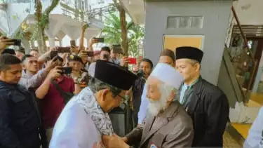 "Mangga pilih calon-calonnya. Tapi Mangga singkatan, Mahfud-Ganjar. Sukses, sukses, sukses Mangga. Mahfud Ganjar," doa Abuya Muhtadi diamini ratusan santri dan ulama yang hadir.