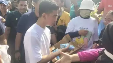 Momen Gibran bagi susu saat cfd. (tvOnenews/Abdul Gani Siregar)