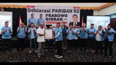Jakarta, tvOnenews.com - Ketua Umum Relawan PARIBAN 02 ( Prabowo - Gibran ), Benlis Butarbutar menyampaikan pasangan Capres-Cawapres nomor urut 2 menjadi kandidat paling konkret yang akan mewujudkan Indonesia Emas 2045.