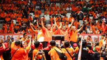 Sejak pukul 11.00 WIB, sejumlah pendukung telah memadati kawasan Gelora Bung Karno dengan mengenakan baju warna oranye yang mewakili khas partai tersebut.