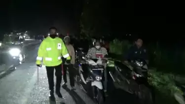 Para pemuda ini nekat menerobos barikade Satlantas Polres Tuban yang tengah menggelar razia. Namun usaha para pemuda itu dapat digagalkan petugas hingga motor mereka oleng dan terjatuh.