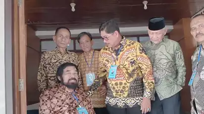 Ketua Umum DPN Forum Komunikasi Purnakarya Perkebunan Nusantara (FKPPN) H. N. Serta Ginting (batik kuning)