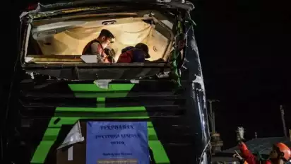 Kecelakaan bus rombongan SMK Lingga Kencana Depok di Subang. Dok: Raisan Al Farisi-Antara