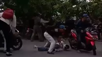 Dalam video yang beredar di media sosial, seorang pelajar terlihat terkapar di tengah jalan usai kena bacok senjata tajam.