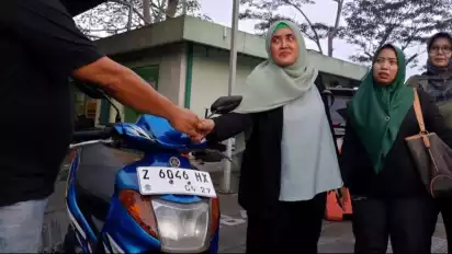 Kendaraan roda dua tersebut berjenis Nouvo berwarna biru dengan nomor polisi Z 6046 HX, milik Pegi Setiawan.