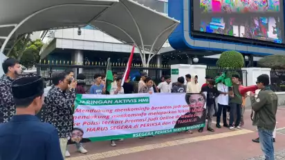 Desakan itu disampaikan Jaringan Aktivis Himpunan Mahasiswa Islam (HMI) saat menggelar unjuk rasa di depan Gedung Kementerian Komunikasi dan Informatika (Kominfo). Salah satu publik figur yang dinilai mempromosikan judi online yaitu Nikita Mirzani.
