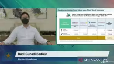 "Hari ini 12 Juli 2021, kita kembali kedatangan 10.000.280 dosis bahan baku vaksin Sinovac, termasuk ekstra sepuluh dan satu RKN (kontainer) reagen," kata Menteri Kesehatan Budi Gunadi Sadikin dalam konferensi pers "Kedatangan Vaksin COVID-19 Tahap Ke-21" secara virtual yang dipantau dari Jakarta, Senin.
