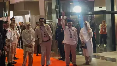 Saat berada di lobi JIExpo keduanya nampak menyapa sejumlah awak media yang berada di luar. Selain itu, kedatangan mereka pun disambut para pendukungnya yang telah hadir.