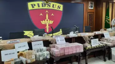 Selain itu juga turut disita mata uang hongkong HKD 483.320 dan mata uang rupiah Rp 5.725.075.000, logam mulia emas antam total 46,9 kilogram.