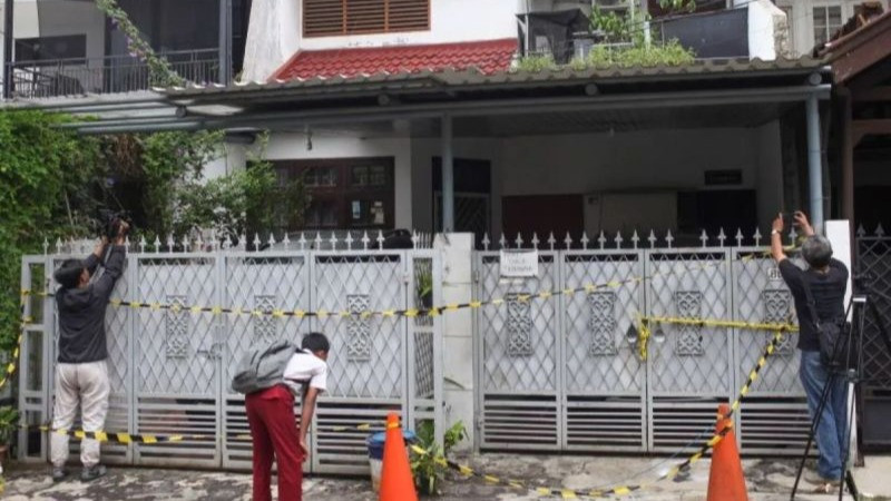 Lokasi anak bunuh ayah dan neneknya di Perumahan Bona Indah, Lebak Bulus, Jakarta, Senin (2/12). (Foto: Antara)