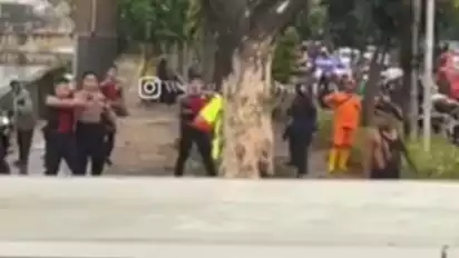 Namun, pria tersebut malah mengejar anggota polisi sambil mengacungkan senjata. Alhasil para anggota turut lari untuk menyelamatkan diri.