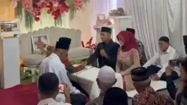 Foto tersebut tampak menggambarkan Bu Salsa bersama seorang pria sedang melakukan proses akad nikah.