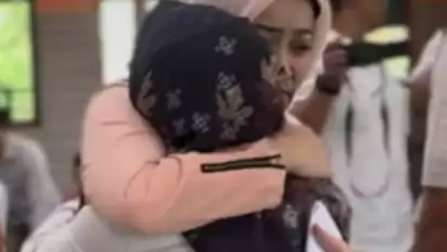 Foto pertama adalah foto saat Atalia sedang memeluk seorang perempuan.