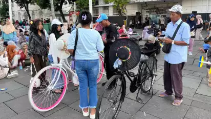Bedasarkan pantauan tvOnenews.com, terlihat para penyewa menjejerkan sepeda ontel yang berwarna-warni di halaman depan Museum Fatahillah. Mulai dari sepeda warna hitam, biru, pink hingga kuning.