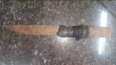 "Pisau seukuran pisau dapur gagangnya karet," sambungnya.