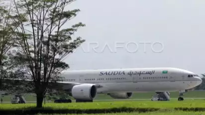 Akhirnya, pilot pesawat Saudia Airlines memutuskan mengalihkan penerbangan dengan melakukan pendaratan darurat ke Bandara Kualanamu, Deli Serdang, Sumatera Utara, pukul 10.44 WIB. (ant/dpi)