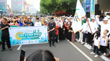 Jakarta, tvOnenews.com - Sebanyak 1.500 peserta memadati sepanjang Jalan MH Thamrin, Jakarta, Minggu (22/6/2025). Jalur yang menjadi kawasan bebas kendaraan setiap Minggu pagi itu kali ini menjadi ajang Car Free Day (CFD) Syiar Muharam 1447 Hijriah sebagai pembuka rangkaian kegiatan Peaceful Muharam yang digelar Kementerian Agama (Kemenag).