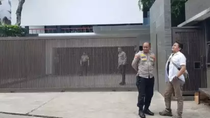Di dalam rumah hanya terdapat penjaga, sementara di luar rumah tampak puluhan anggota polisi bersiaga.