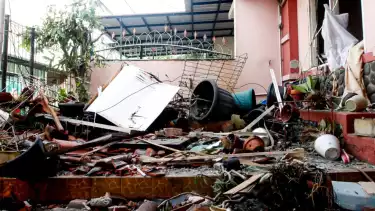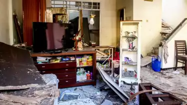 Ledakan tersebut menyebabkan kondisi rumah porak poranda, dengan dinding retak dan atap yang ambruk sebagian.