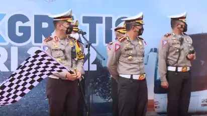 Jakarta - Kepala Korps Lalu Lintas (Kakorlantas) Polri, Irjen Firman Shantyabudi melepas ribuan pemudik yang ikut dalam program mudik gratis Polri 2022. Mudik gratis diadakan sebagai bakti Polri terhadap masyarakat.
